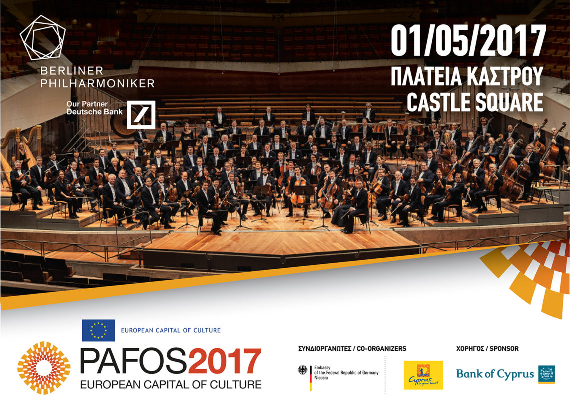 Η Πάφος και η Κύπρος, γενικότερα θα έχουν την ξεχωριστή τιμή να φιλοξενήσουν, για πρώτη φορά στα χρονικά, την 1η Μαίου, στις 12 π.μ. , στην πλατεία του Κάστρου της Πάφου, την παγκοσμίου φήμης Φιλαρμονική Ορχήστρα του Βερολίνου, σε ένα μοναδικό κονσέρτο, στα πλαίσια του Προγράμματος της Πολιτιστικής Πρωτεύουσας της Ευρώπης Πάφος 2017. Για το σπουδαίο αυτό πολιτιστικό γεγονός, για τον τόπο μας, δόθηκε το μεσημέρι της Πέμπτης, στην Δημοσιογραφική Εστία στη Λευκωσία, δημοσιογραφική διάσκεψη, από τον Οργανισμό Πάφος 2017, τους συντελεστές και τους υποστηρικτές της παράστασης.