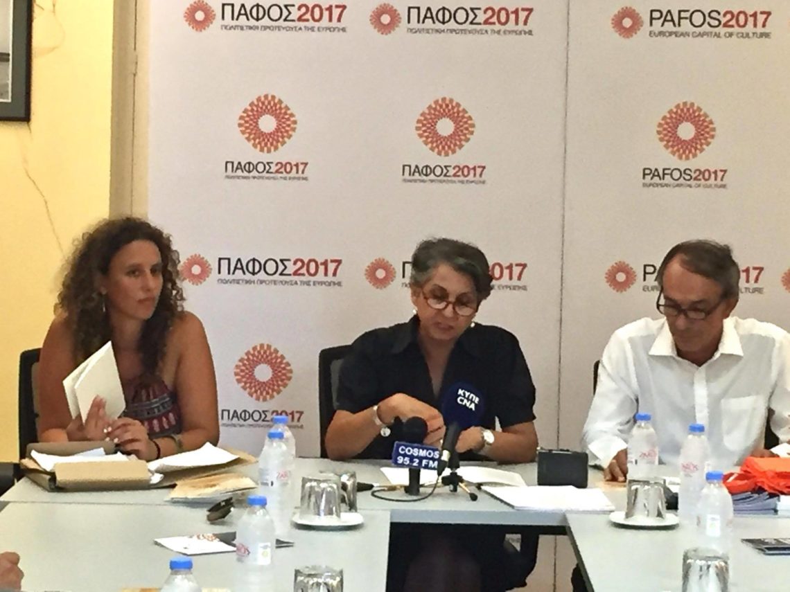 Then, the curator and coordinator of the project, Katerina Foukara, made a brief reference to the open invitation for artists held in 2014 and for which the response was so great that it resulted in 207 submissions from a total of 29 countries! She stated that this project is a public treasure for our country and concluded saying that alongside the realisation of the International Symposium, the slogan “linking continents – bridging cultures” of Pafos2017 is being widely promoted.